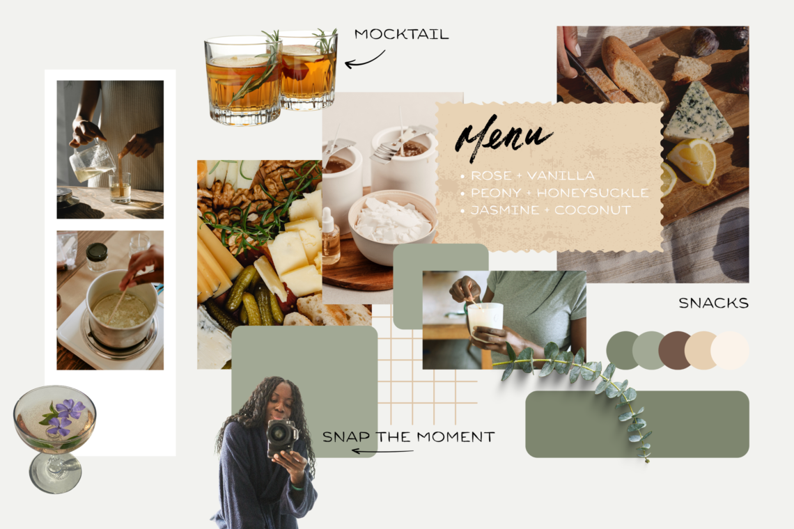 - Mocktail or cocktail station with drinks that pair with your scent theme (think lavender lemonade or cinnamon-spiced sangria)